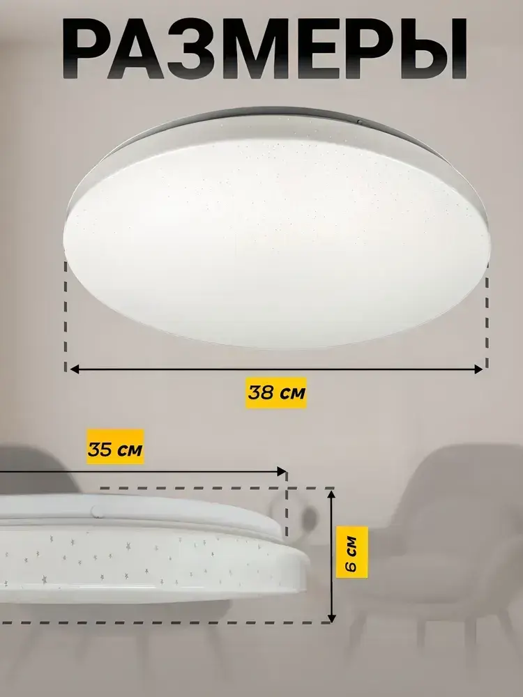 Люстра потолочная светодиодная с пультом. Светильник для спальни, зала, гостиной, детской комнаты. SkyTop 72W (38cm)