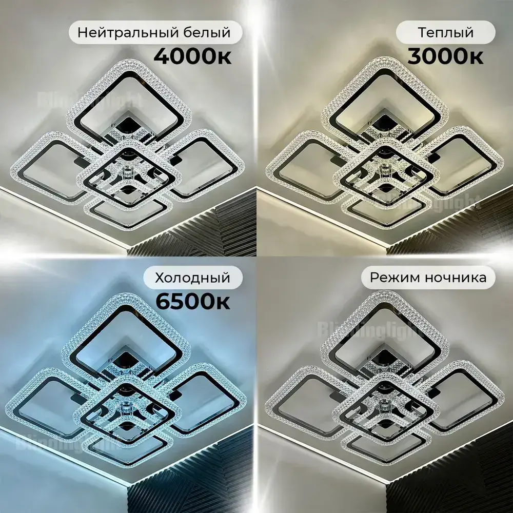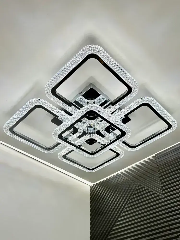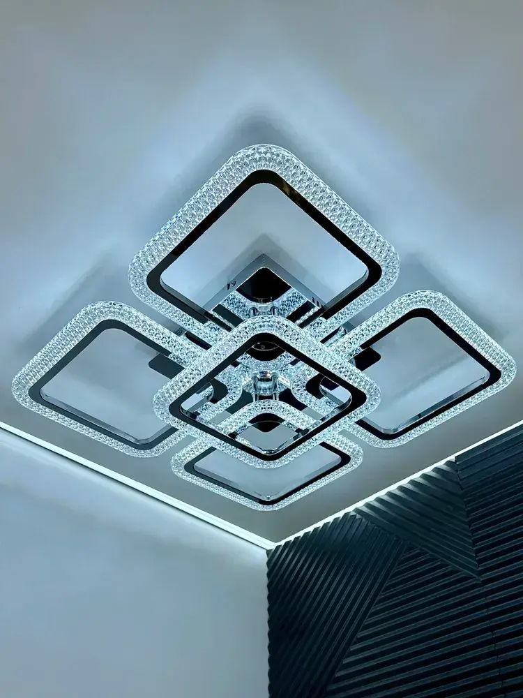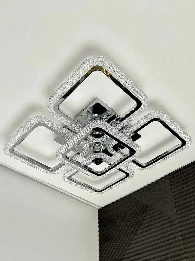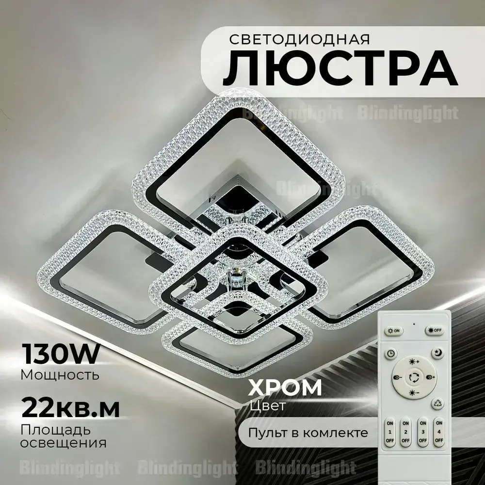 Люстра потолочная в цвете хром с пультом для всех видов потолков, 130 Вт