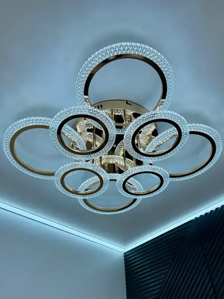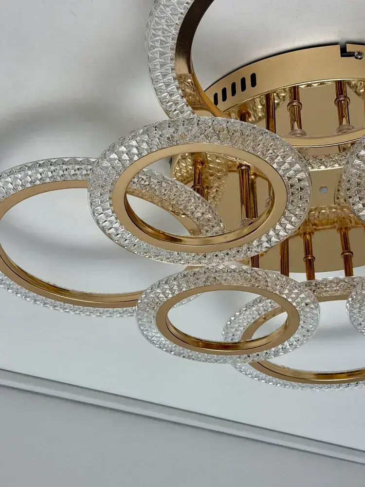 Люстра потолочная золотая с пультом для всех видов потолков, 144 Вт