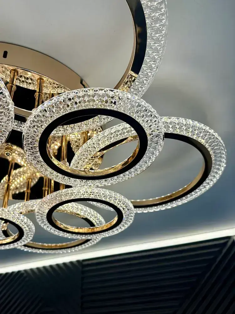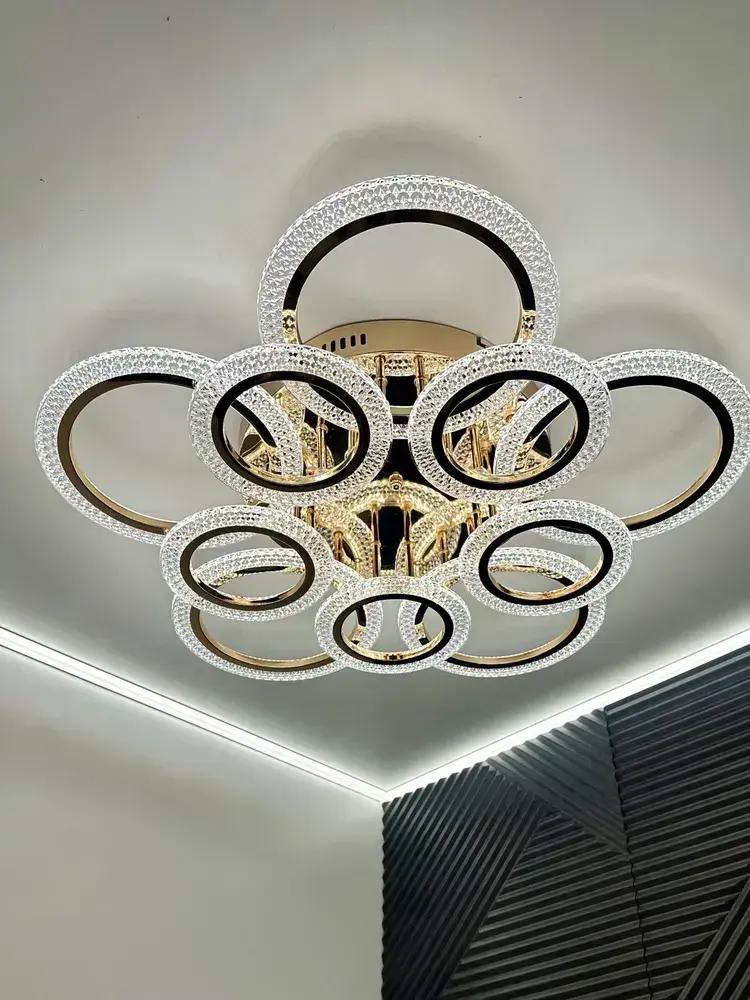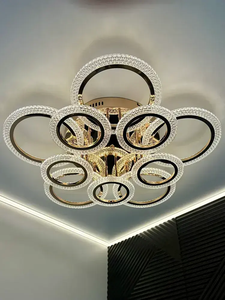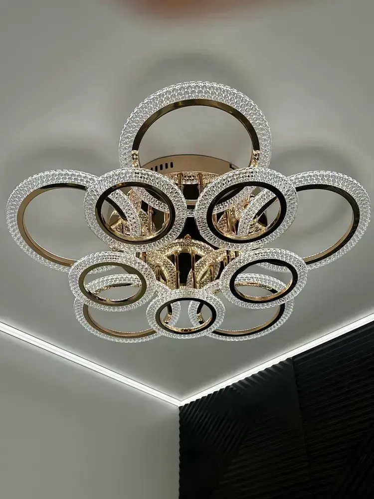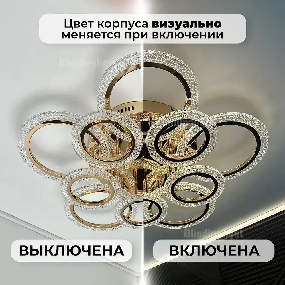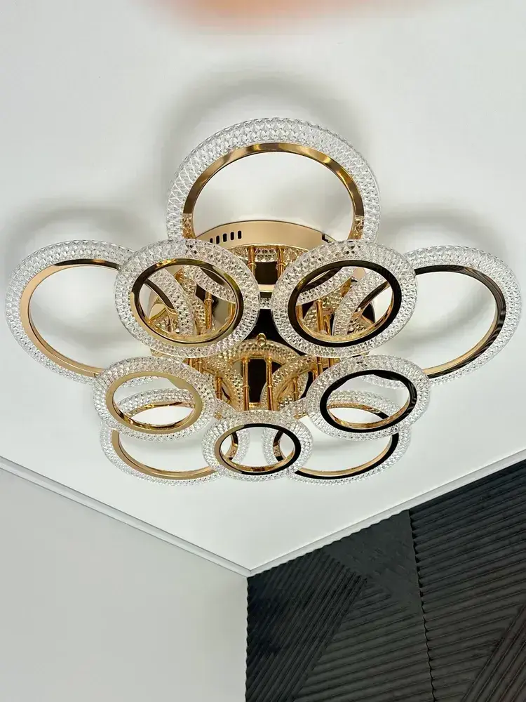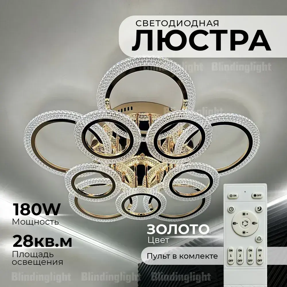 Люстра потолочная золотая с пультом для всех видов потолков, 180 Вт
