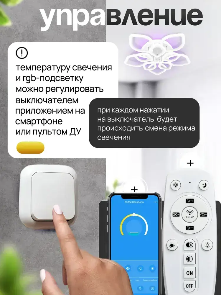 Люстра светодиодная с пультом 1379/5+5, люстра потолочная в спальню 244Вт