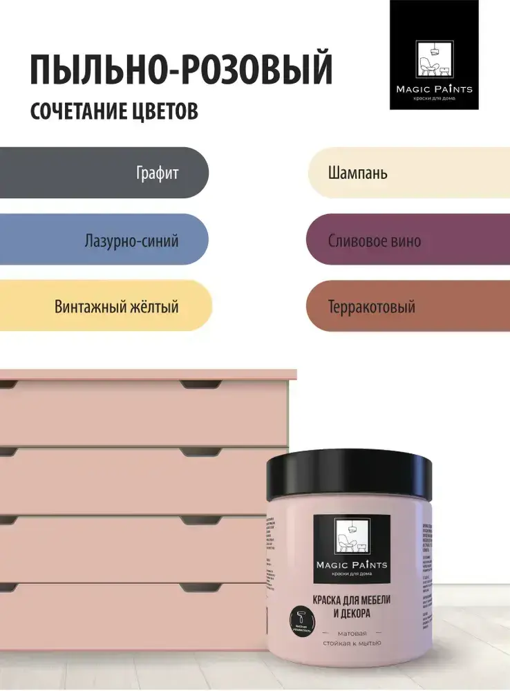 Magic Paints Краска Быстросохнущая, Гладкая, до 90°, Акриловая, Водная, Матовое покрытие, 0.5 л, 0.7 кг, светло-розовый, розовый