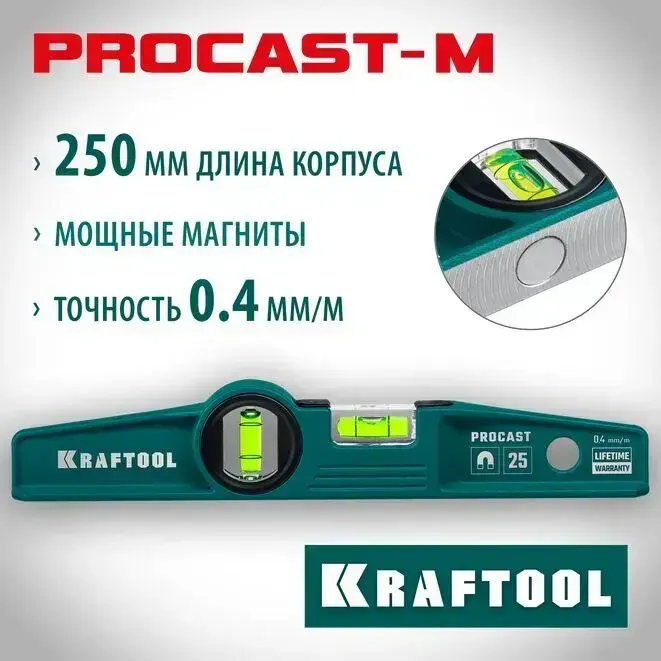 Магнитный литой уровень KRAFTOOL Procast 250 мм 34717-025