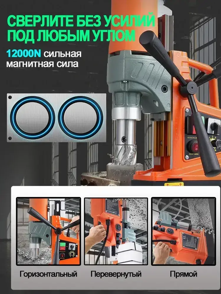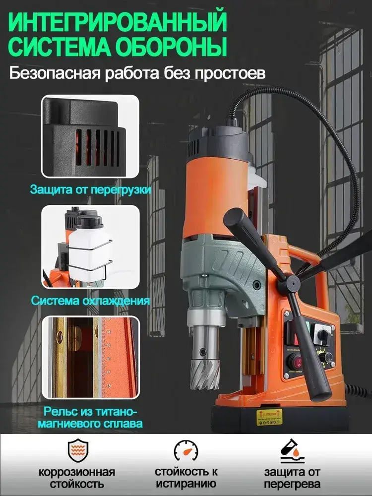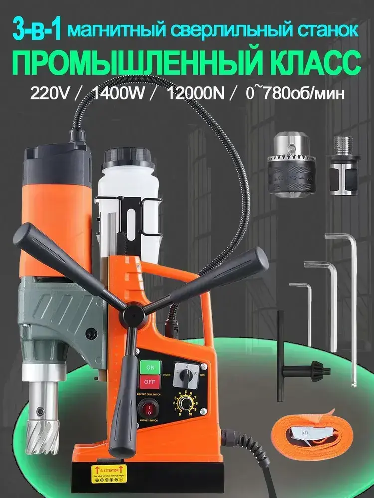 Магнитный сверлильный станок, промышленный класс, 1400 Вт, 780 об/мин, диаметр сверления 1,6 дюйма, регулировка 10 скоростей, с прямым и обратным вращением