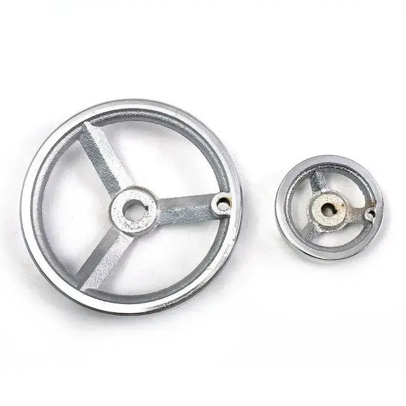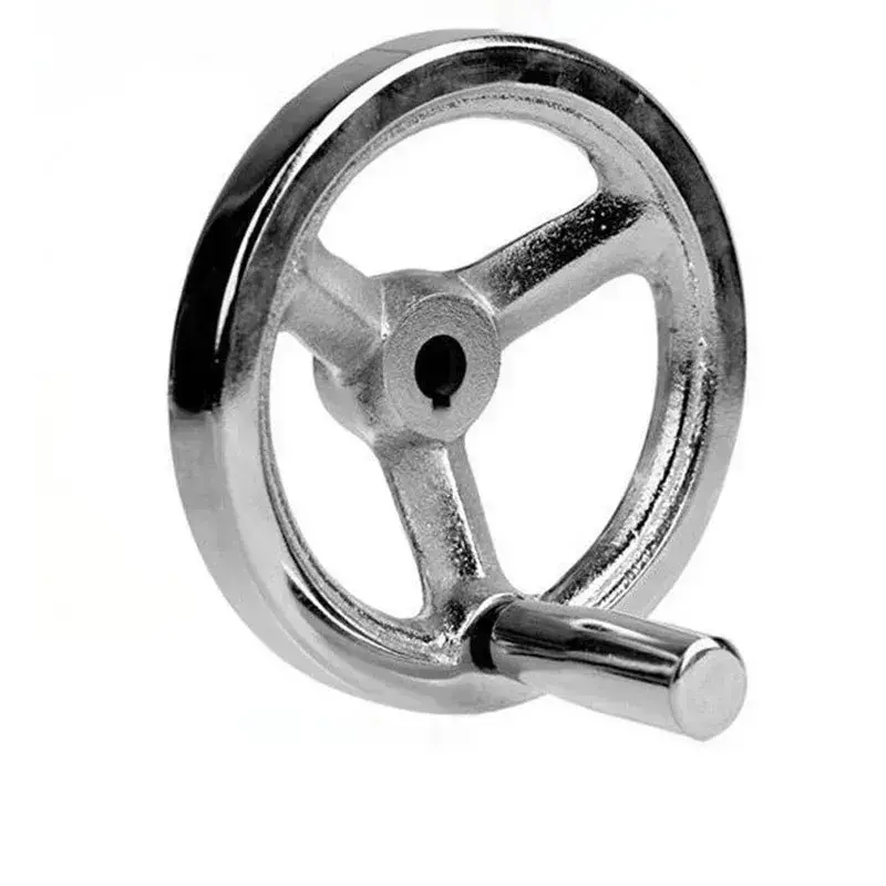 Маховик чугун 125х14х5мм (Dxdxb) с 3-мя спицами, с ручкой М8