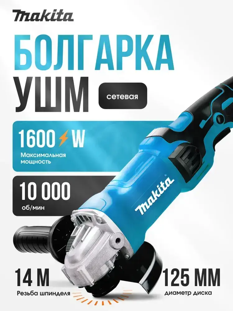 Makita Болгарка УШМ 125 с регулировкой оборотов электрическая/ Шлифмашина сетевая 1600W щеточная