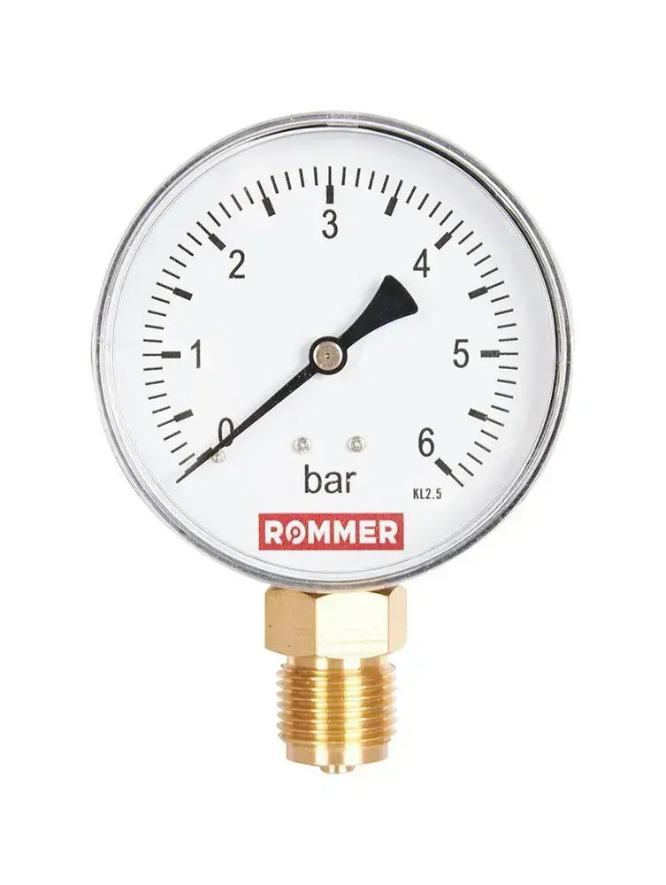 Манометр радиальный Rommer 80 мм, 0-6 бар, 1/2