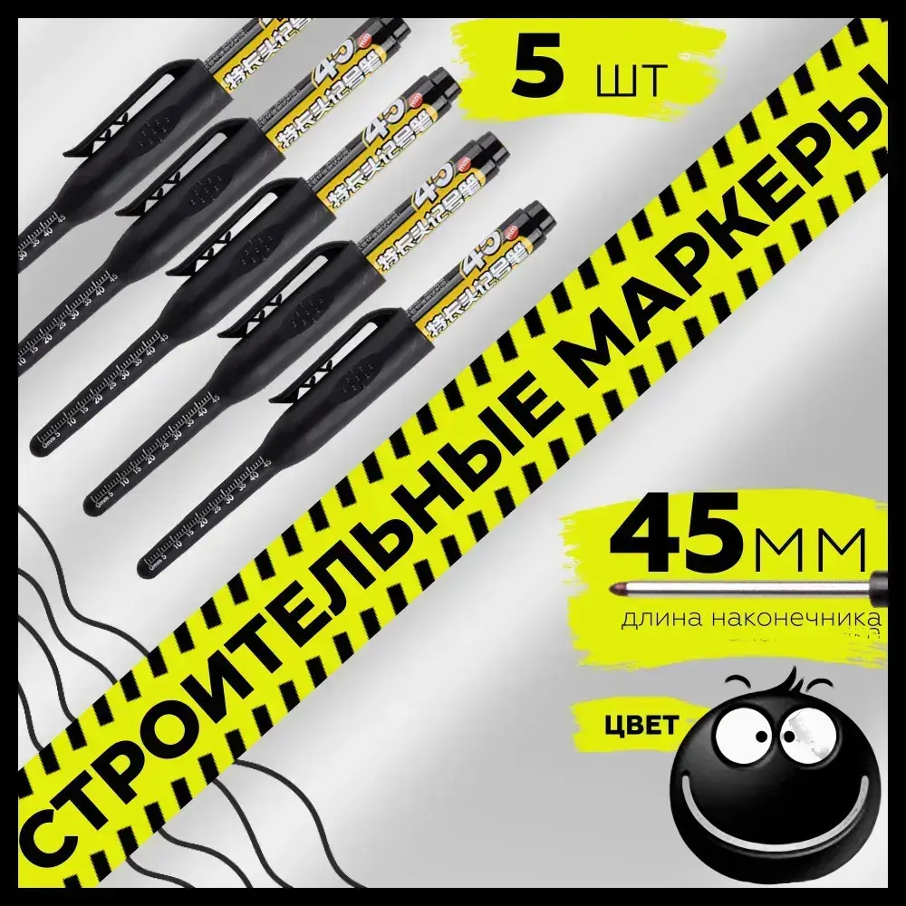 Маркер строительный черный, набор 5 штук, длинна стержня 45мм