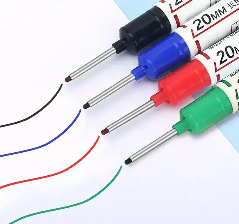 Маркер строительный тонкий разметочный с длинным наконечником 2 шт (черный, белый)