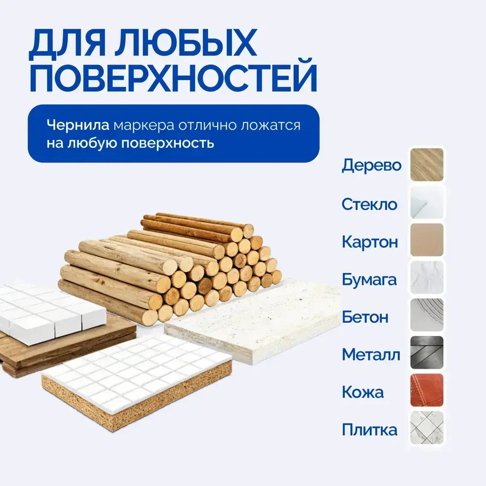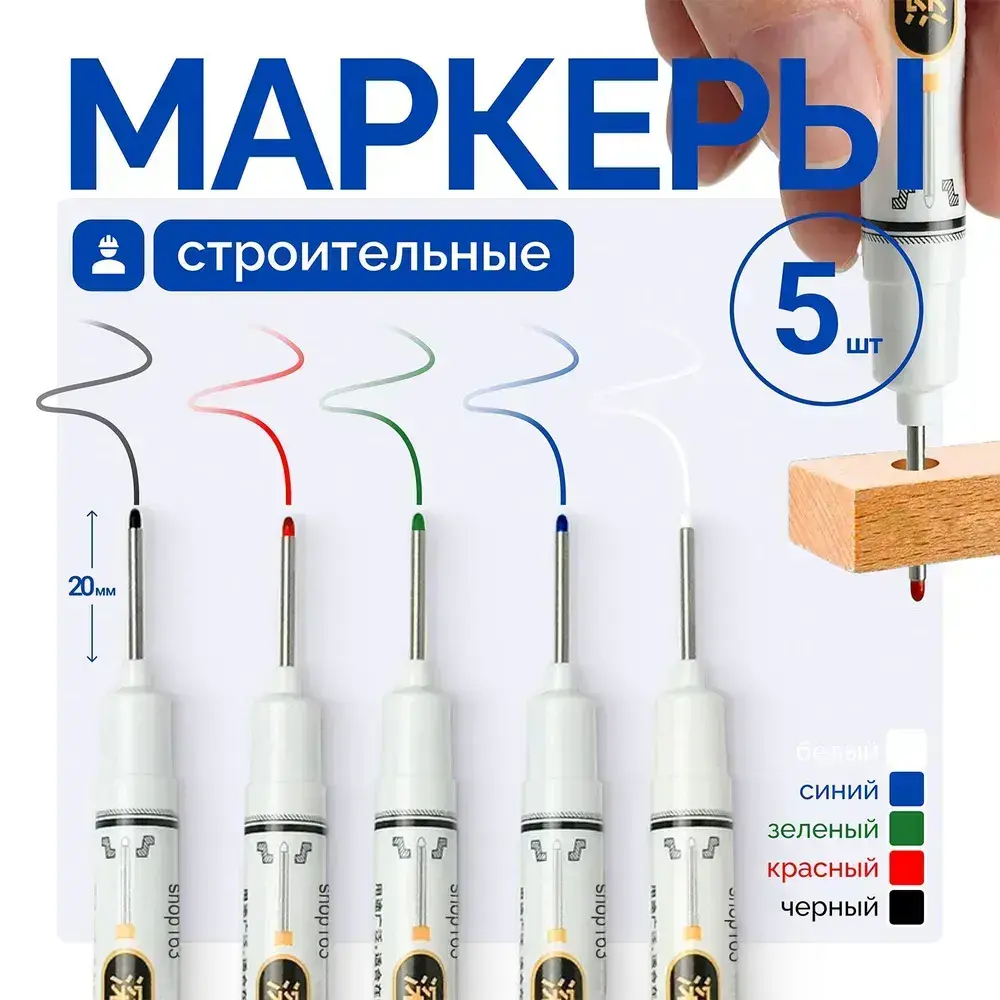 Маркер строительный, тонкий, разметочный с длинным наконечником 5 шт черный, красный, зеленый, синий, белый