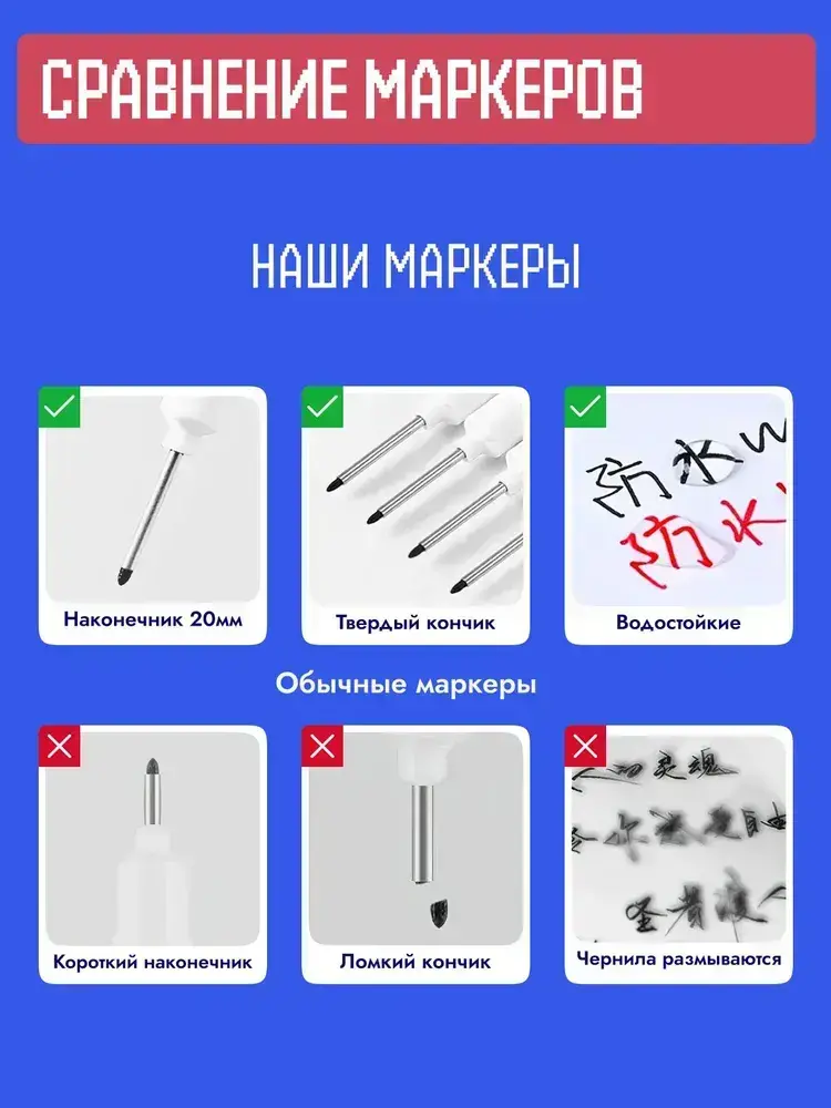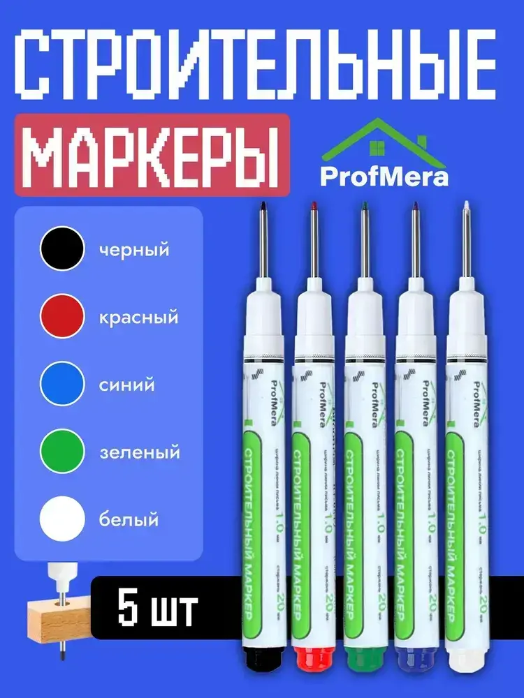 Маркер строительный тонкий разметочный с длинным наконечником / 5 шт (черный, красный, зеленый, синий, белый) / инструменты