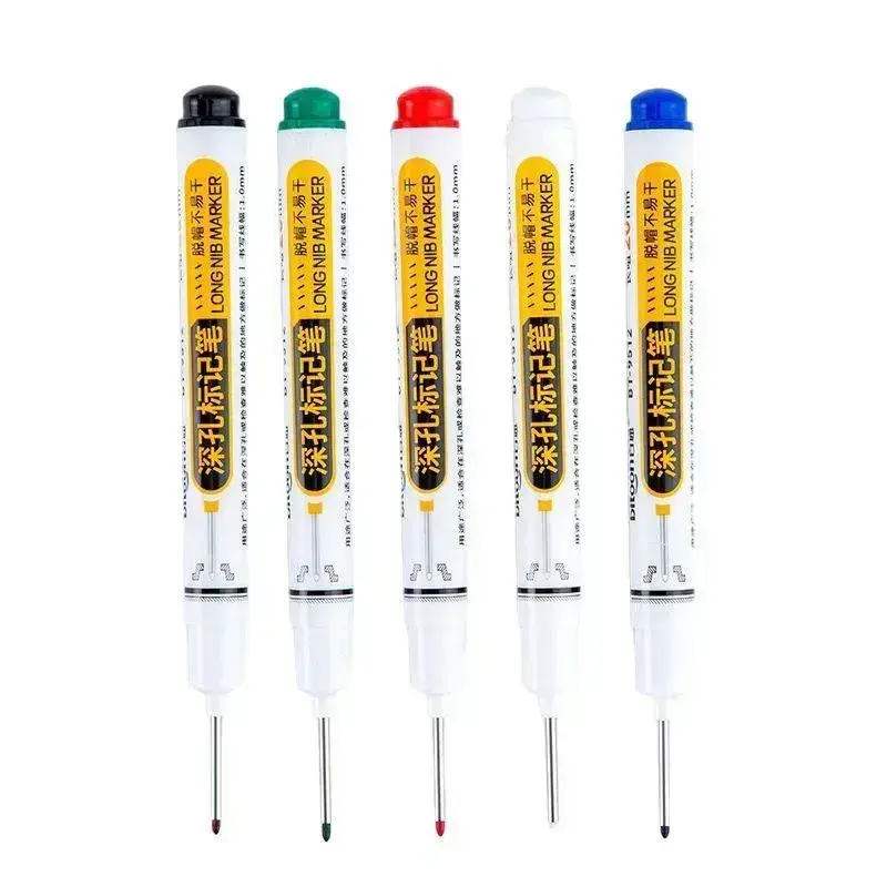 Маркер строительный тонкий разметочный с длинным наконечником, многоразовый / 5 шт (черный, красный, зеленый, синий, белый) / Маркеры строительные набор по металлу, дереву и стеклу