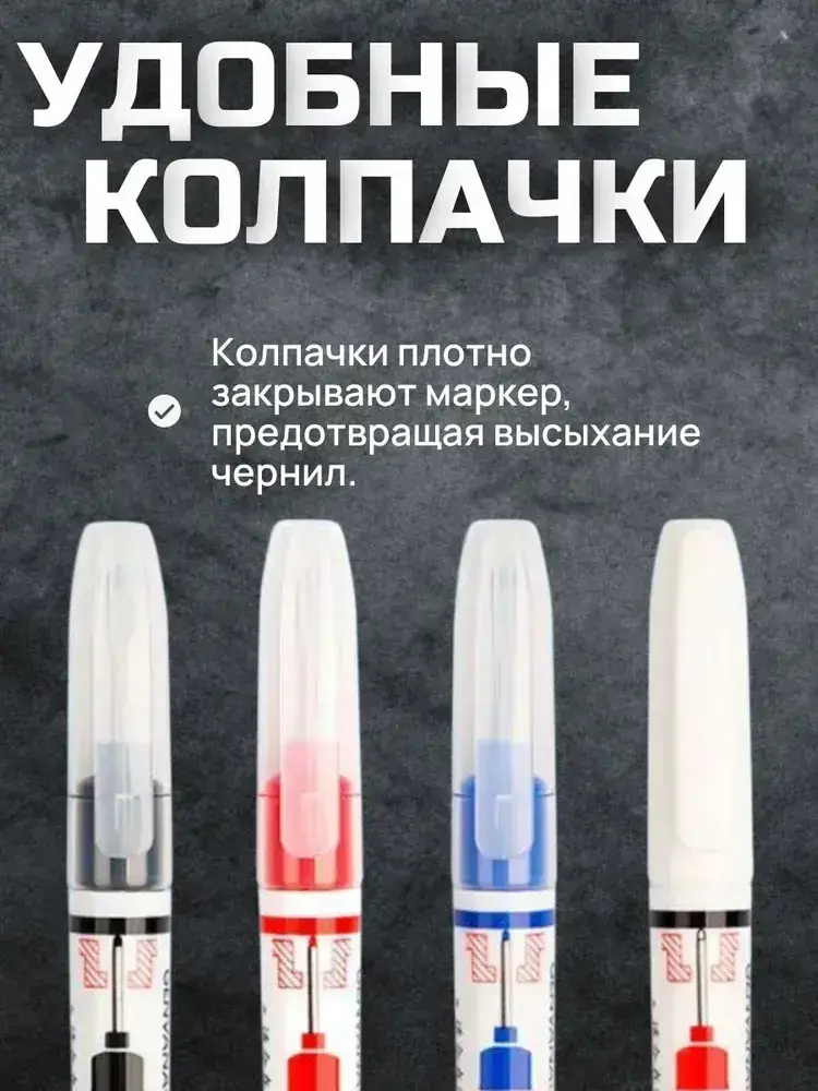 Маркер строительный тонкий ; с длинным наконечником ; 4 шт (черный, красный, синий, белый) ; стержень 20 мм