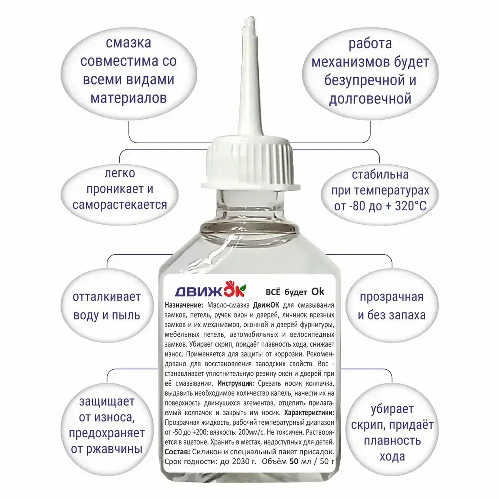 Масло - смазка для дверей и замков, петель и окон, 50 мл