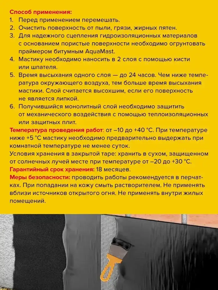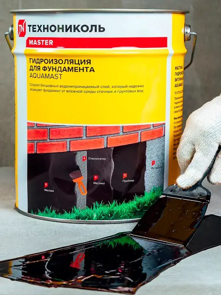 Мастика битумная для фундамента Технониколь AquaMast гидроизоляционная, 18л