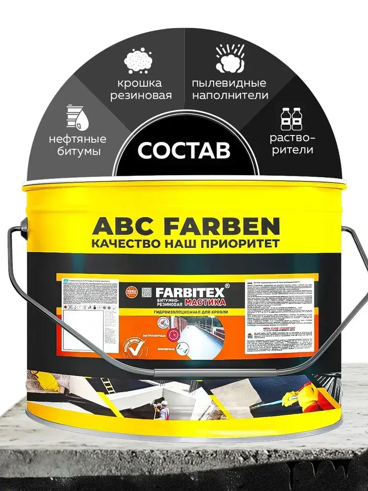 Мастика гидроизоляционная черная с кусочками резины для ремонта кровли, терасс, крыш, фундамента 2 кг FARBITEX