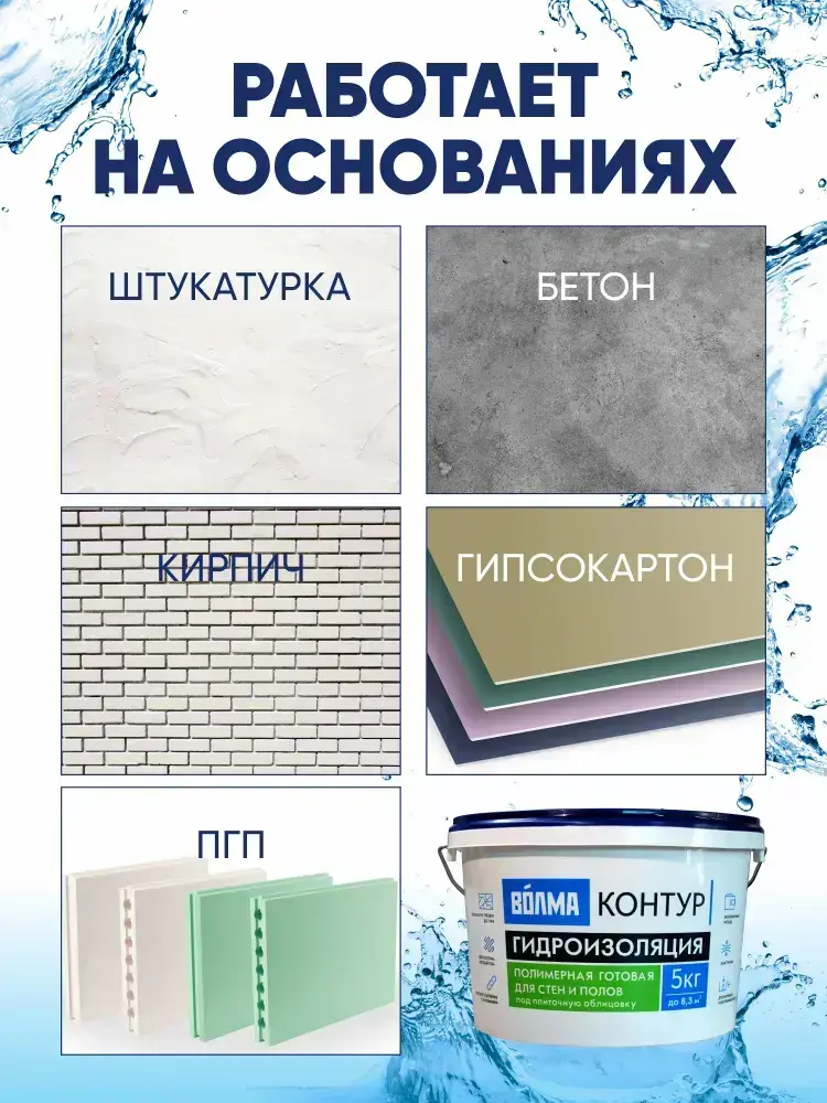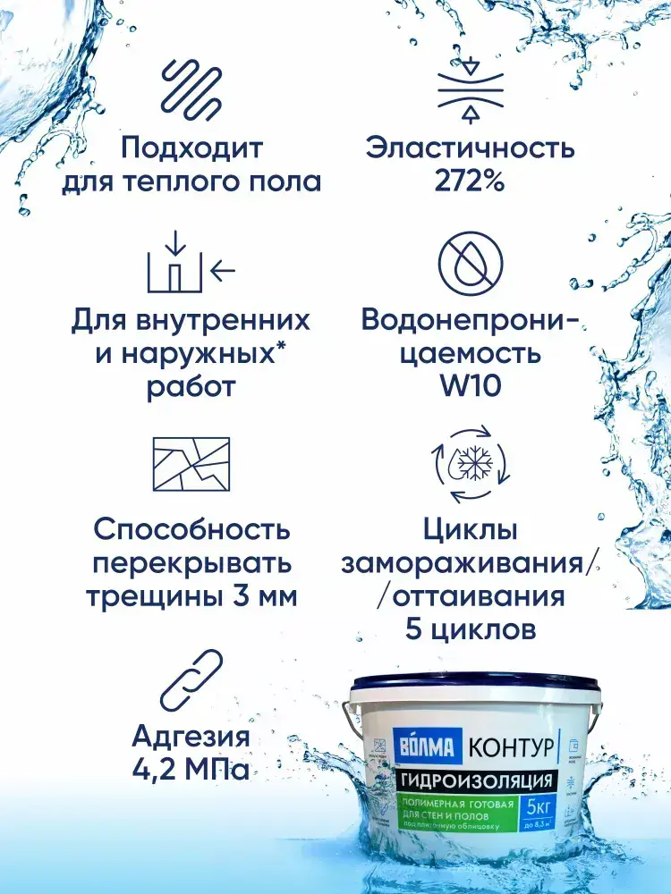 Мастика гидроизоляционная ВОЛМА Контур 5 кг, гидроизоляция для душевой, для ванной