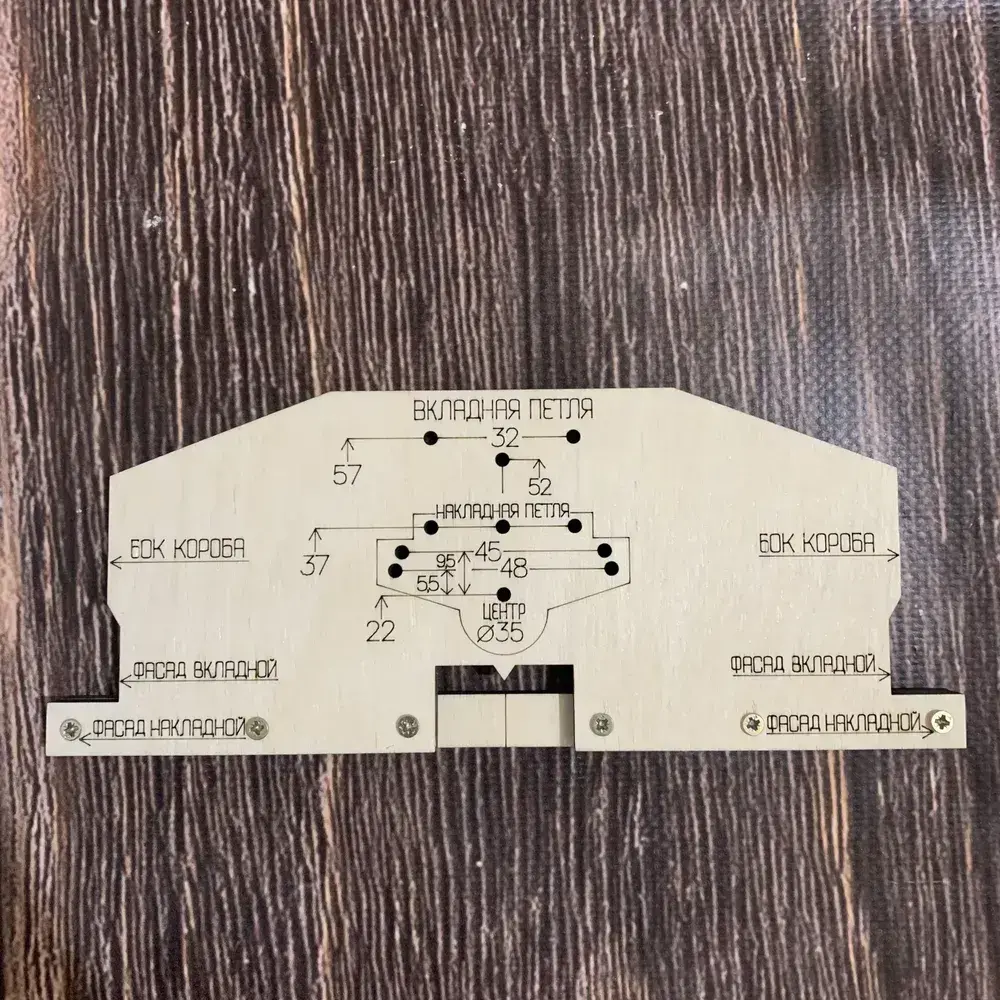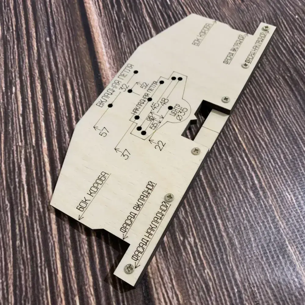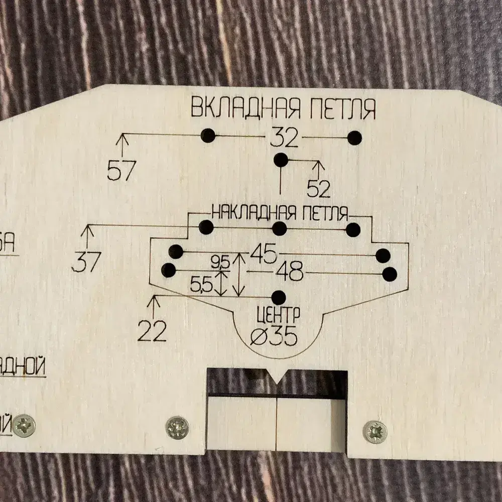 Мебельные петли. Шаблон-кондуктор для разметки и сверления отверстий перед установкой мебельных петель. Без использования рулетки. Чашка петли 35 мм.