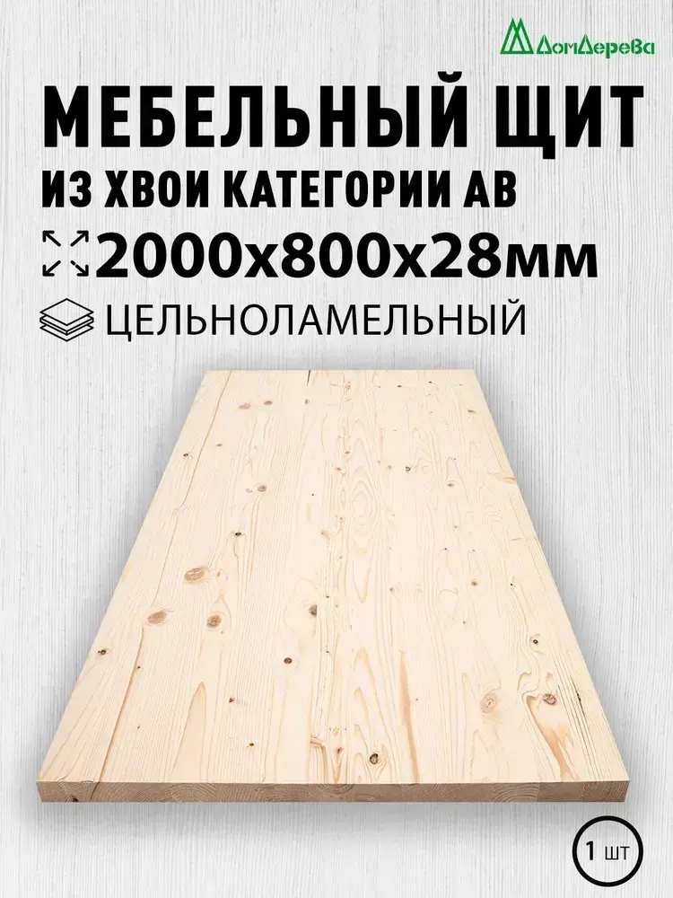 Мебельный щит Дом Дерева 2000x800x28мм Сосна АВ Цельноламельный
