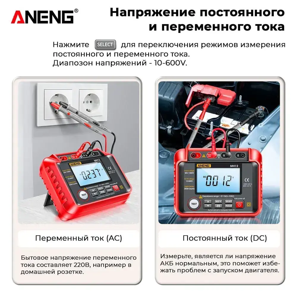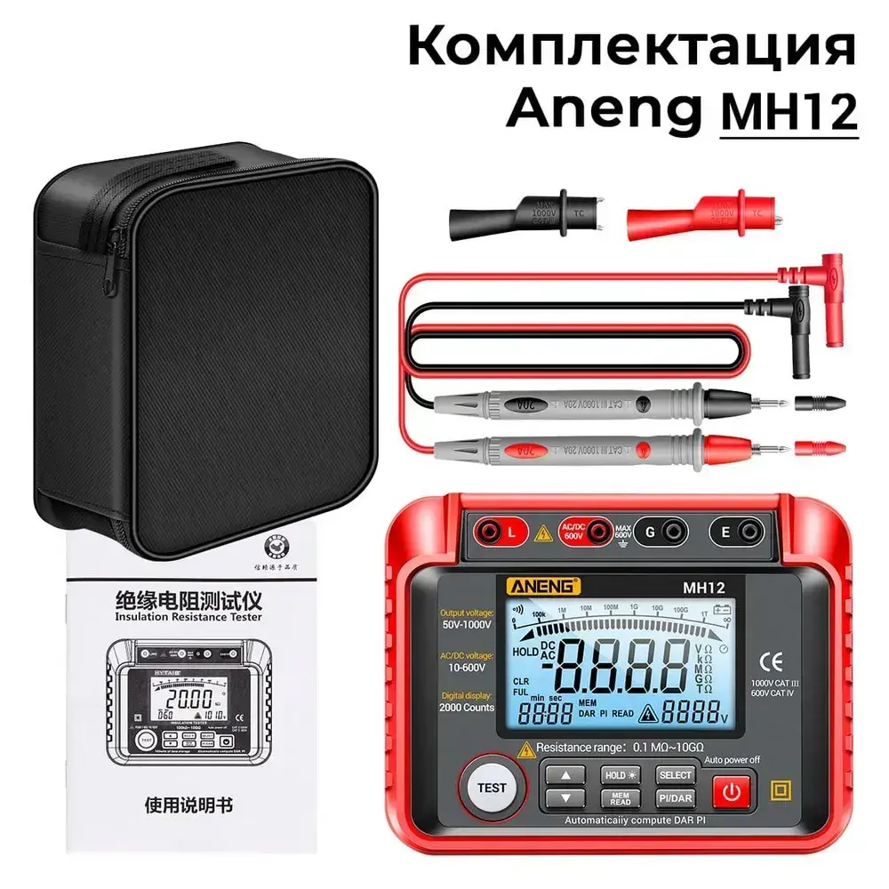 Мегаомметр ANENG MH12, интеллектуальный автоматический цифровой высокоточный универсальный измерительный прибор