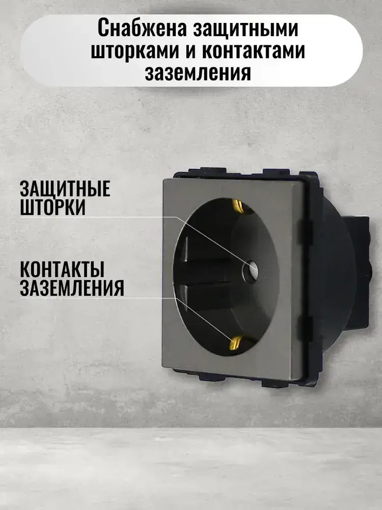 Механизм розетки KLUST Basic с заземлением, со шторками, серый