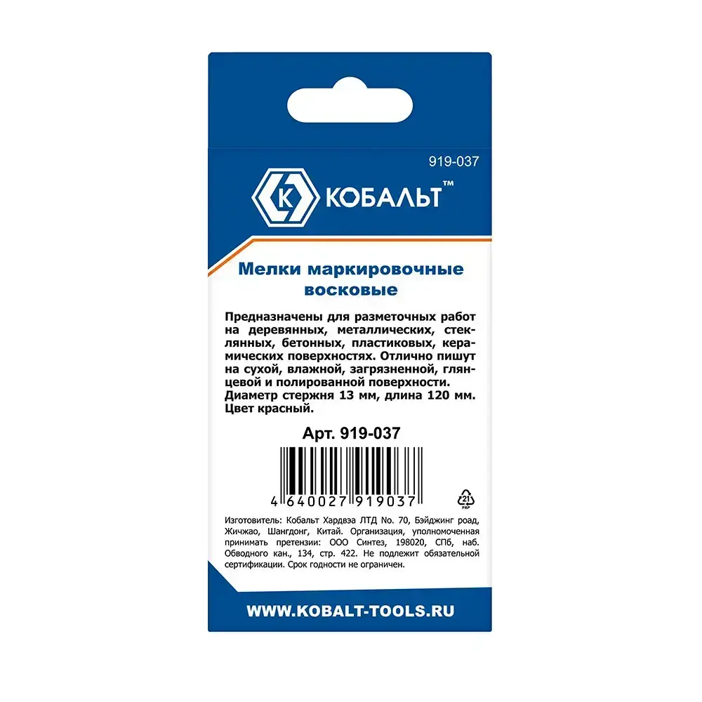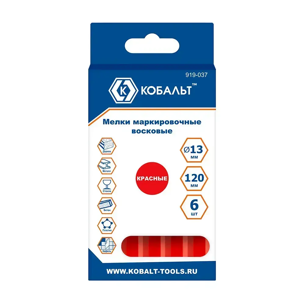 Мелки маркировочные КОБАЛЬТ восковые. красные.120 мм. 6 ШТ.