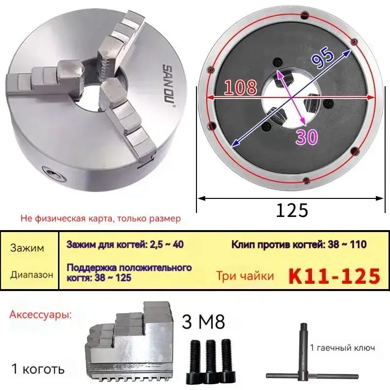 Металлический токарный патрон 125мм трехкулачковый самоцентрирующийся патрон марки SANOU K11-125