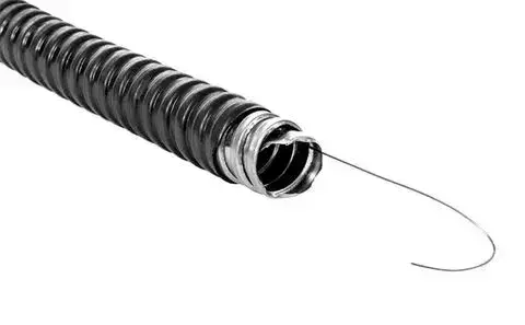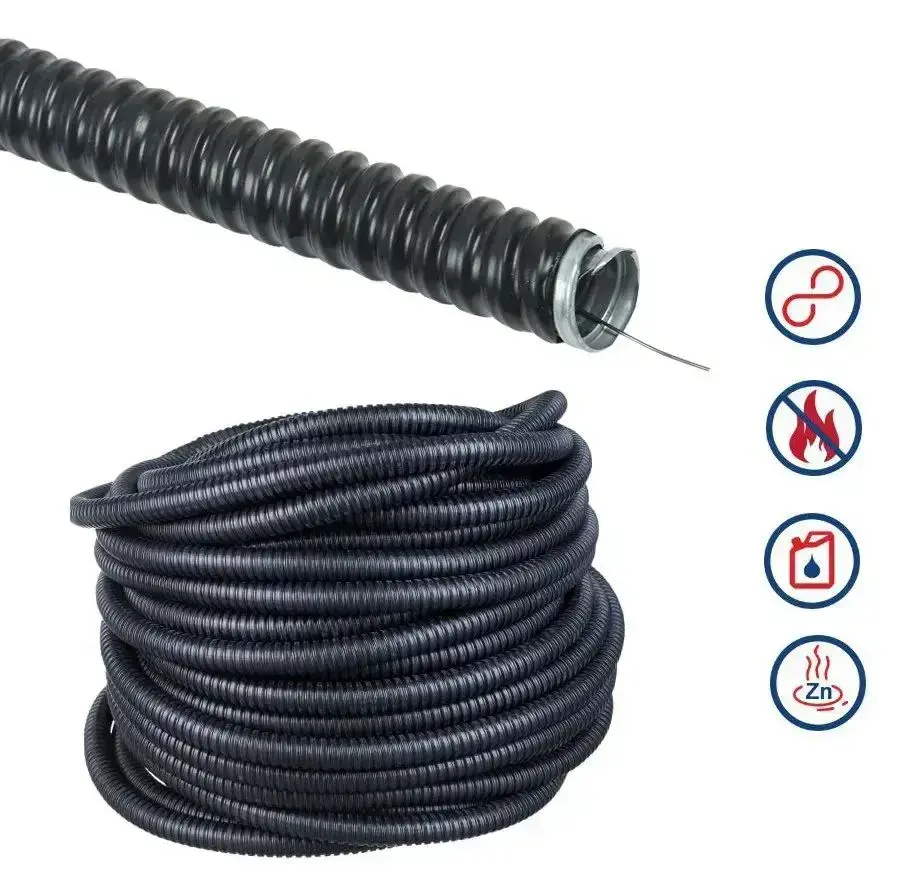 Металлорукав 15мм в ПВХ (20м) с проволокой для протяжки - защита кабеля в стенах, полу, на улице. Оцинкованная сталь.