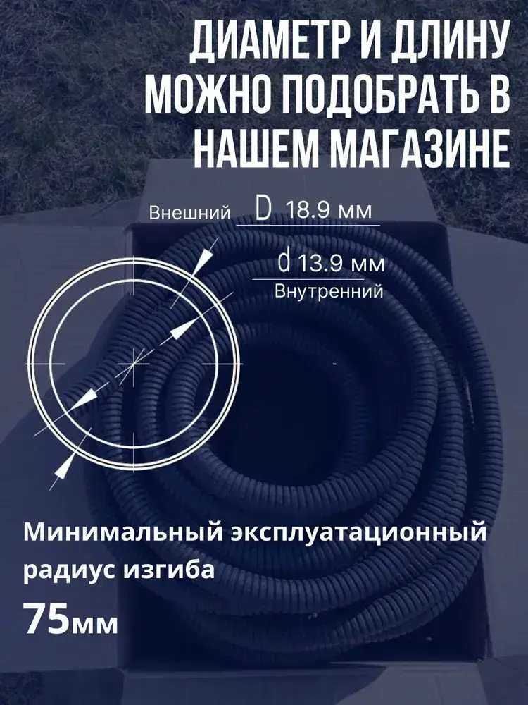 Металлорукав для кабеля в оболочке ПВХ изоляции МРПИ НГ 15 черный с протяжкой 50м