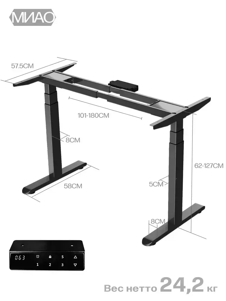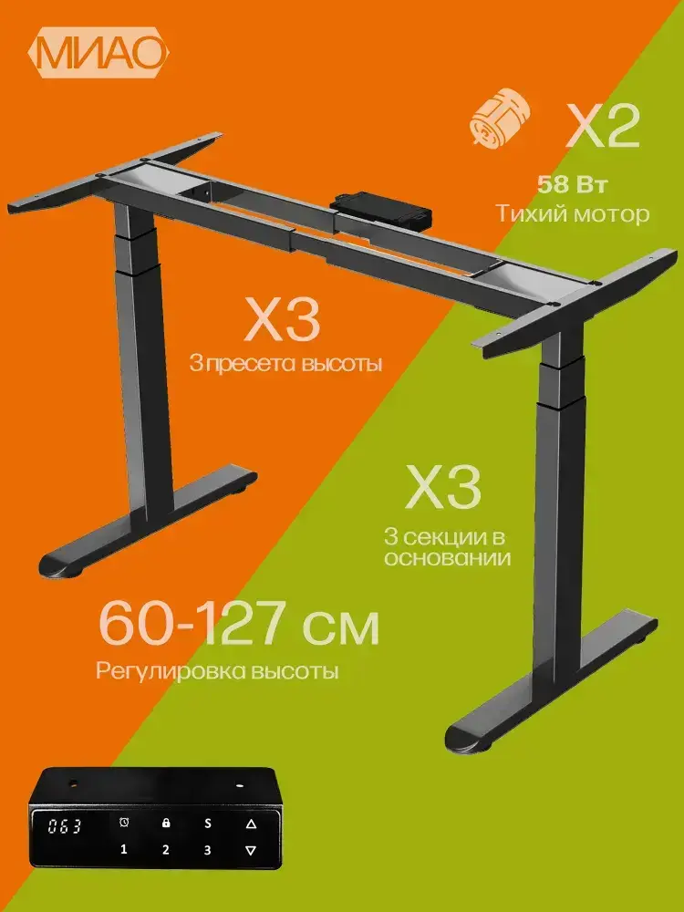 МИАО Подстолье для компьютерного стола с электроприводом, рама для стола регулируемая по высоте, 2-х моторная , цвет черный