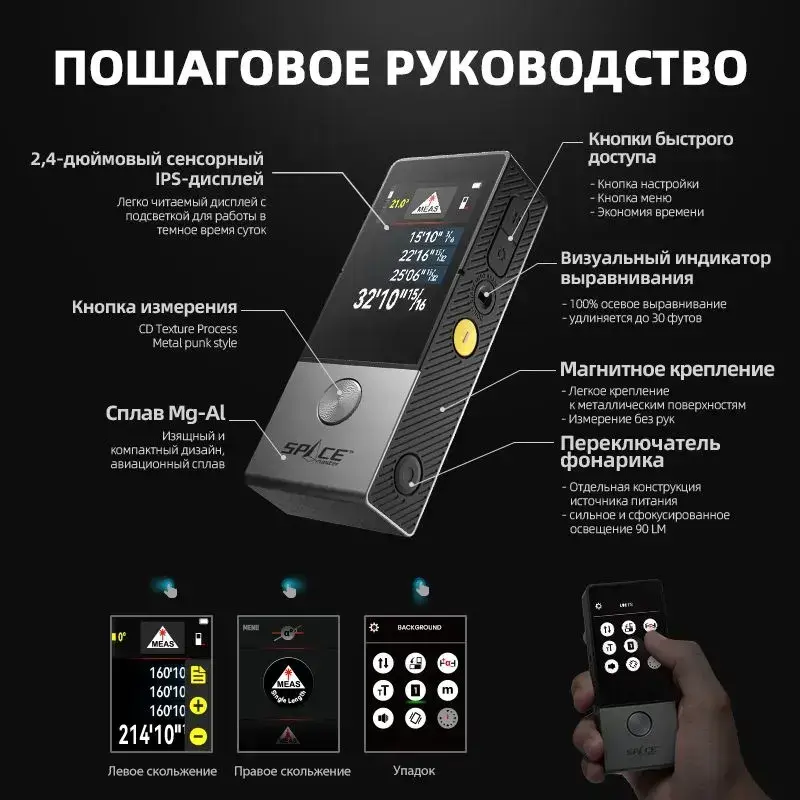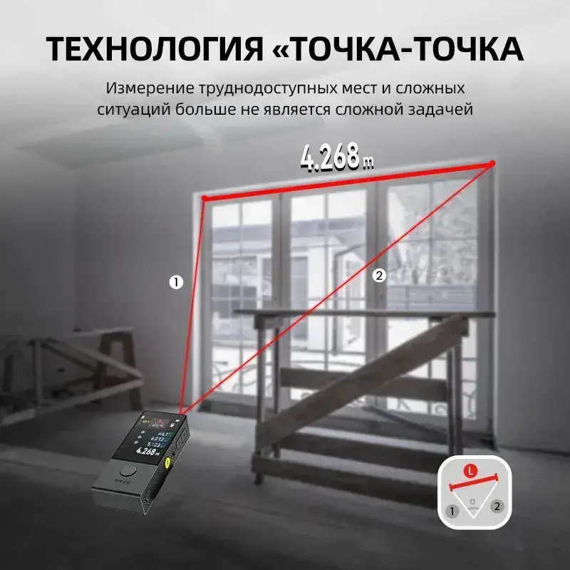 MILESEEY D9 Pro Лазерный Дальномер 100 м, Сенсорный IPS-Экран 2.4", Синхронизация с Приложением, Двусторонний Лазер, P2P, Живое Отображение Угла, Профессиональный Инструмент
