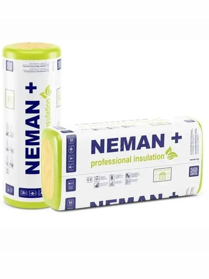 Минеральный утеплитель Неман 50 мм - 1 рул. / 15 м2 для стен, кровли, перекрытий, мансард, перегородок. Плотность 11-13 кг/м3