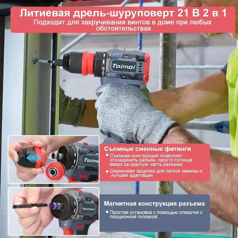 многофункциональный электроинструмент, 16.8V 45HM,Литиевая дрель 2 в 1, электрическая отвертка,2 АКБ