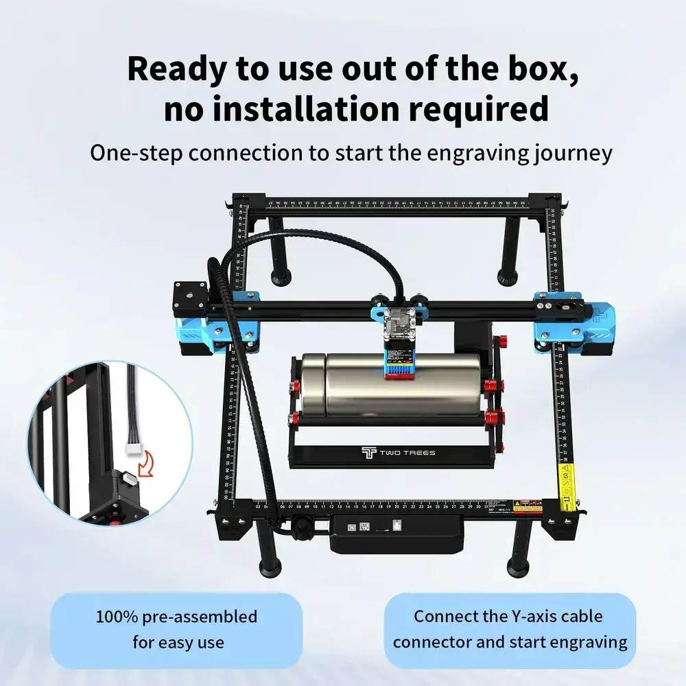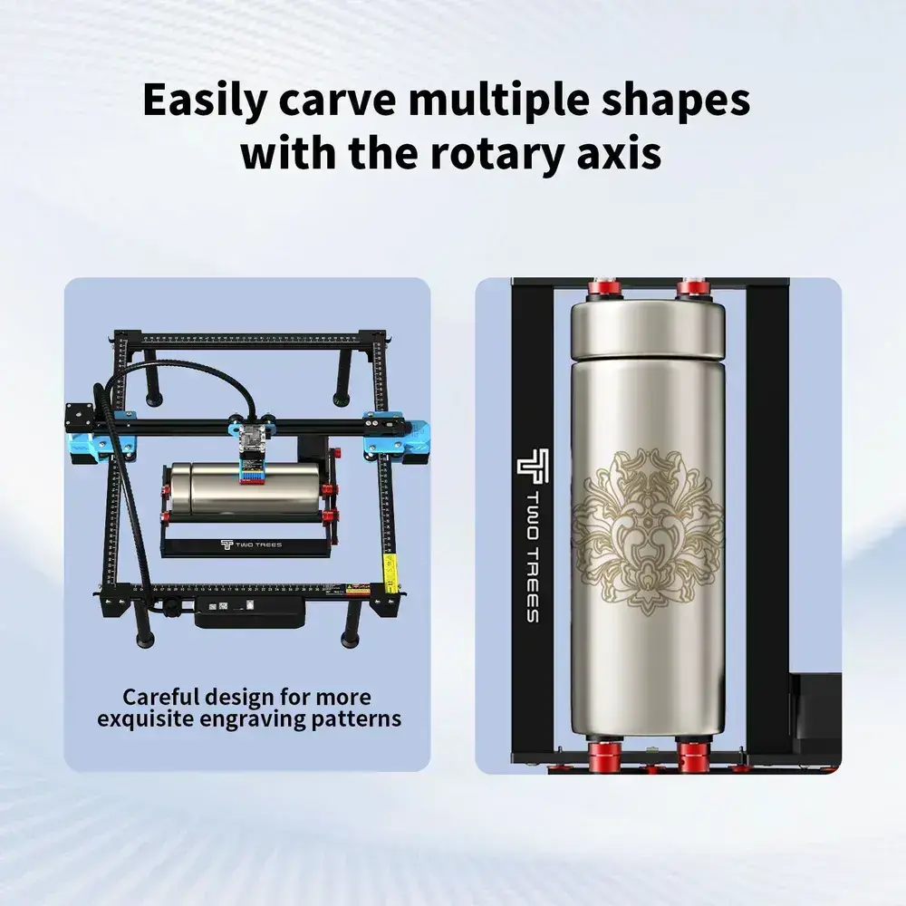 Модуль лазерного вращения Twotrees-TR3 используется для гравировки круглых предметов.