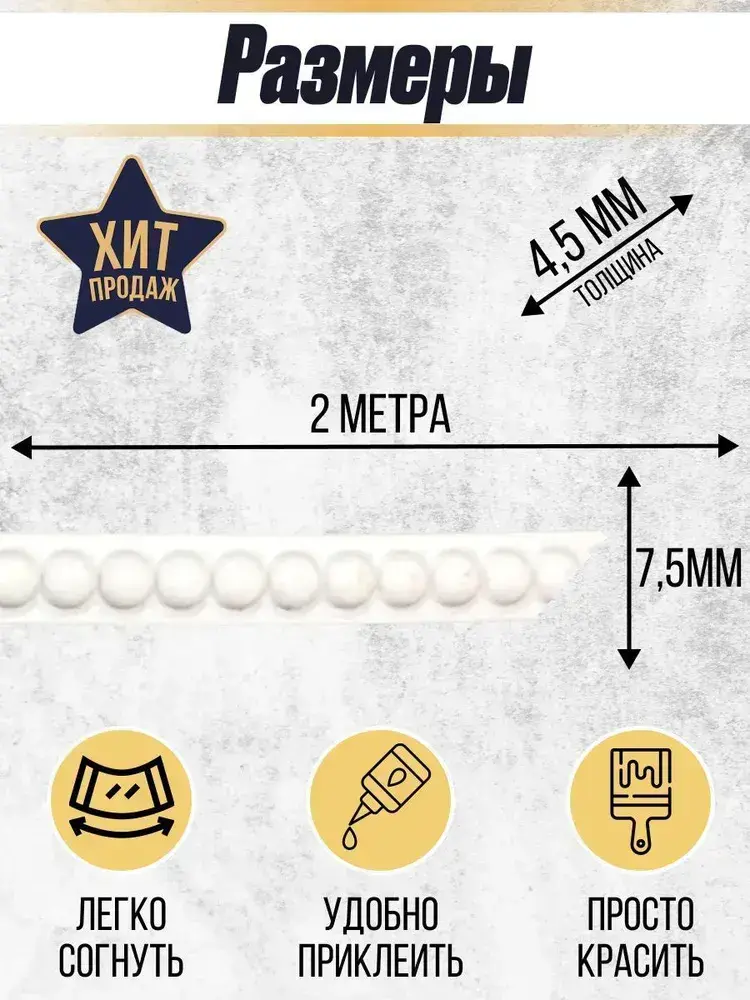 Молдинг декоративный гибкий 7.5мм 2м / для стен / декор для дома