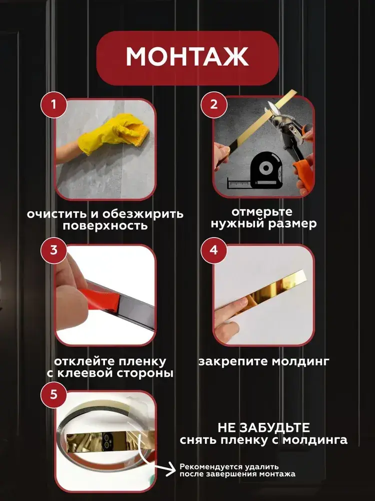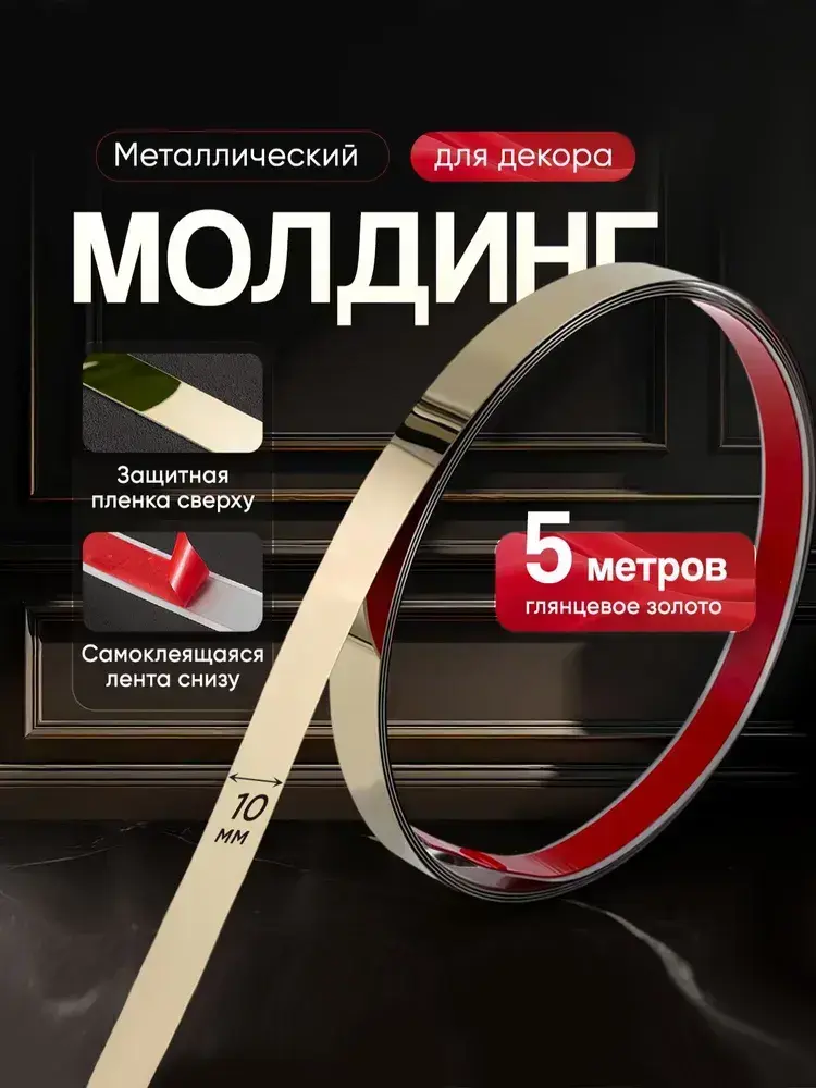 Молдинг декоративный самоклеящийся металлический золото 10 мм