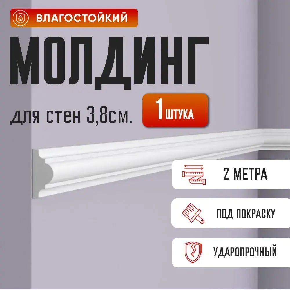 Молдинг для стен 38мм., дюрополимер, влагостойкий, под окраску 38х18х2000мм