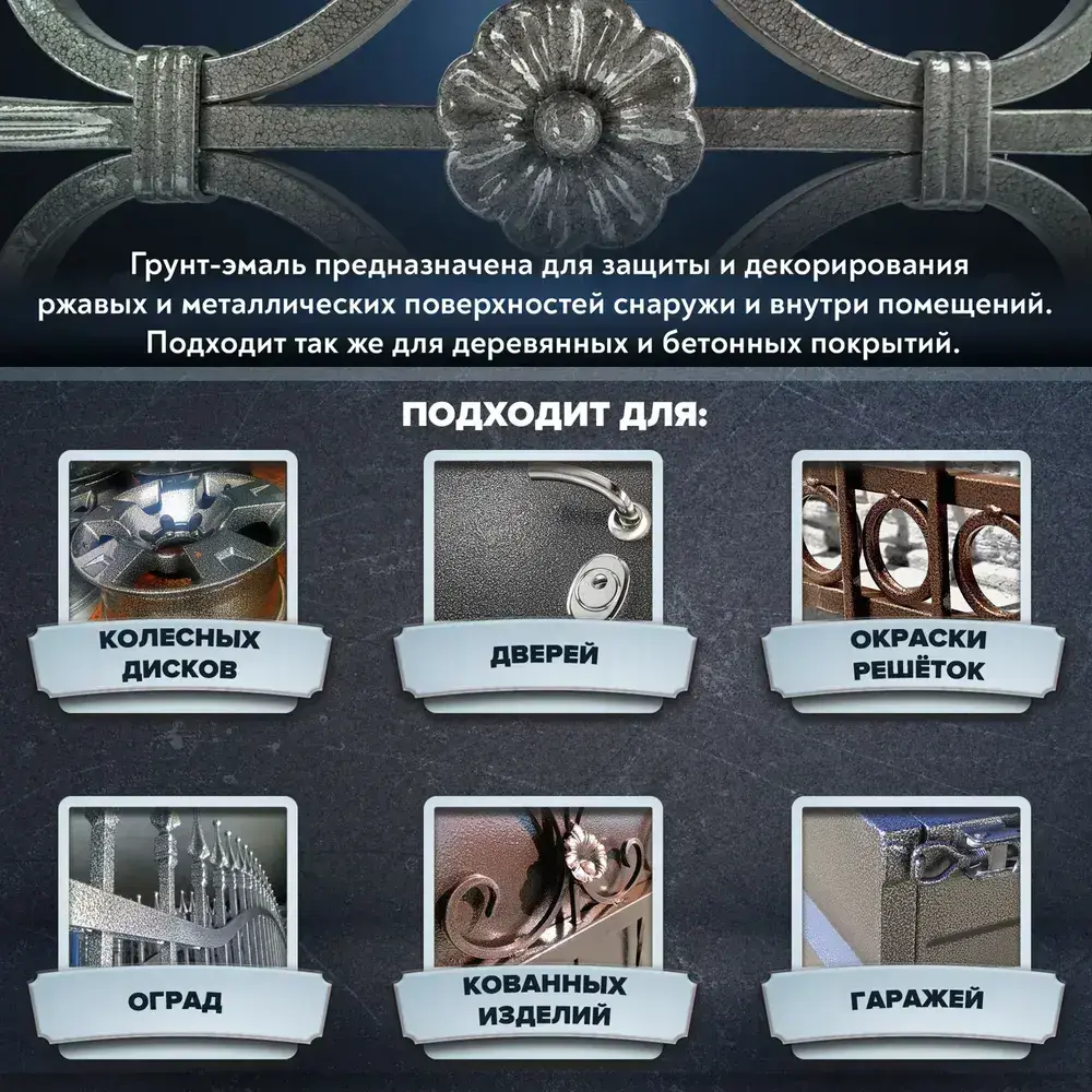 Молотковая краска по металлу MOKKE, цвет Серебристый, 0,8 кг, грунт-краска по ржавчине