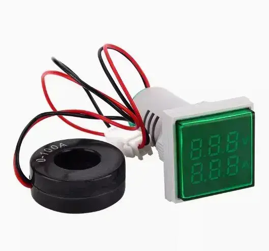 Монитор переменного тока встраиваемый AD16-22 Зелёный 50-380 В 100А / Цифровой вольтметр, амперметр с внешним датчиком