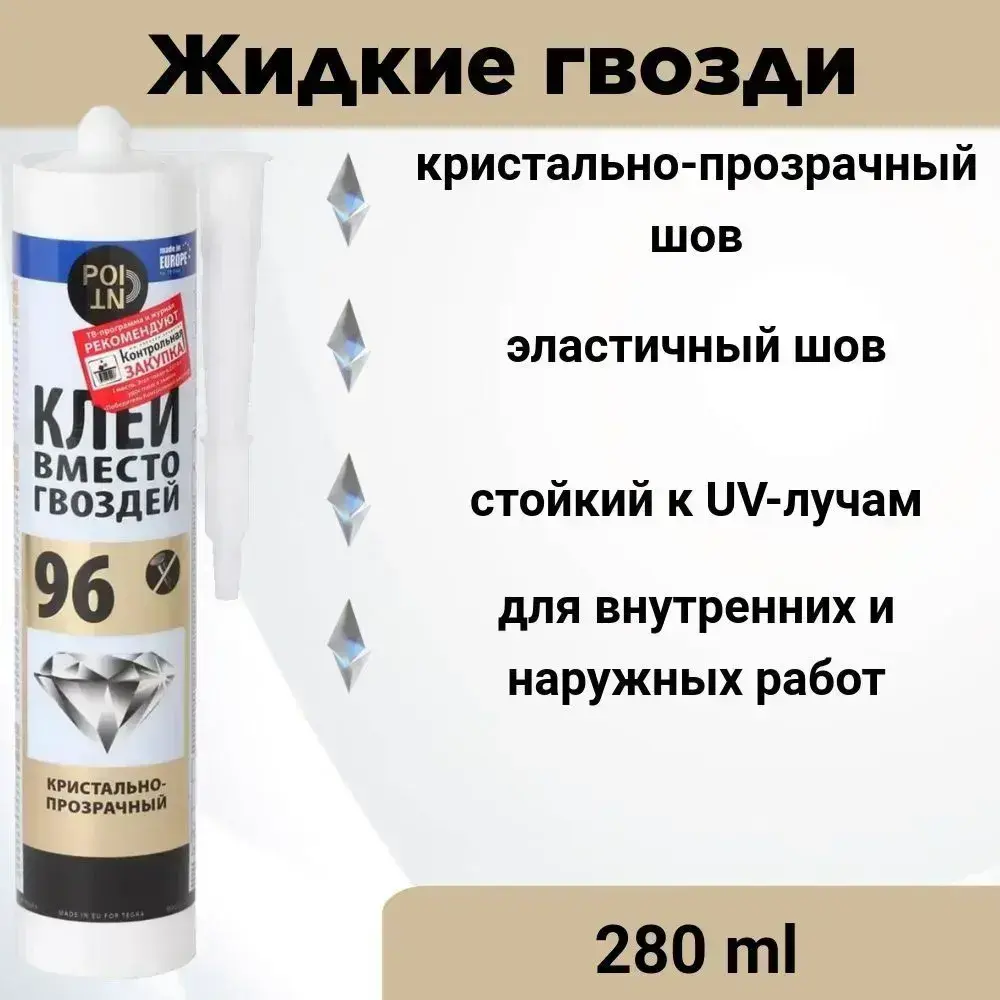 Монтажный клей вместо гвоздей (жидкие гвозди) POINT 96, кристально-прозрачный, 280 мл