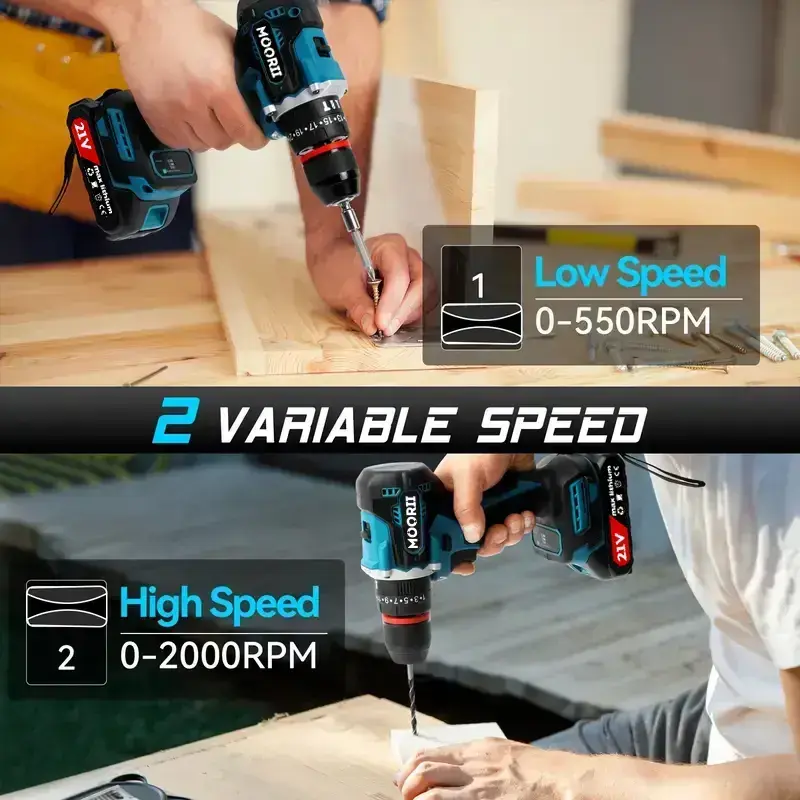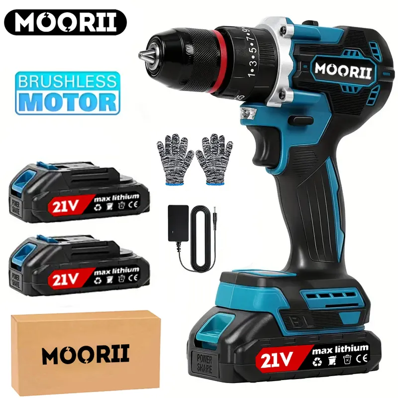 MOORII Шуруповерт, 21 В, 100 Нм, 2 АКБ
