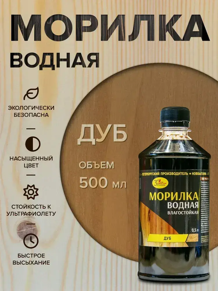 Морилка для дерева ДУБ, Новбытхим 500мл, пропитка на водной основе дерева, бумажной лозы
