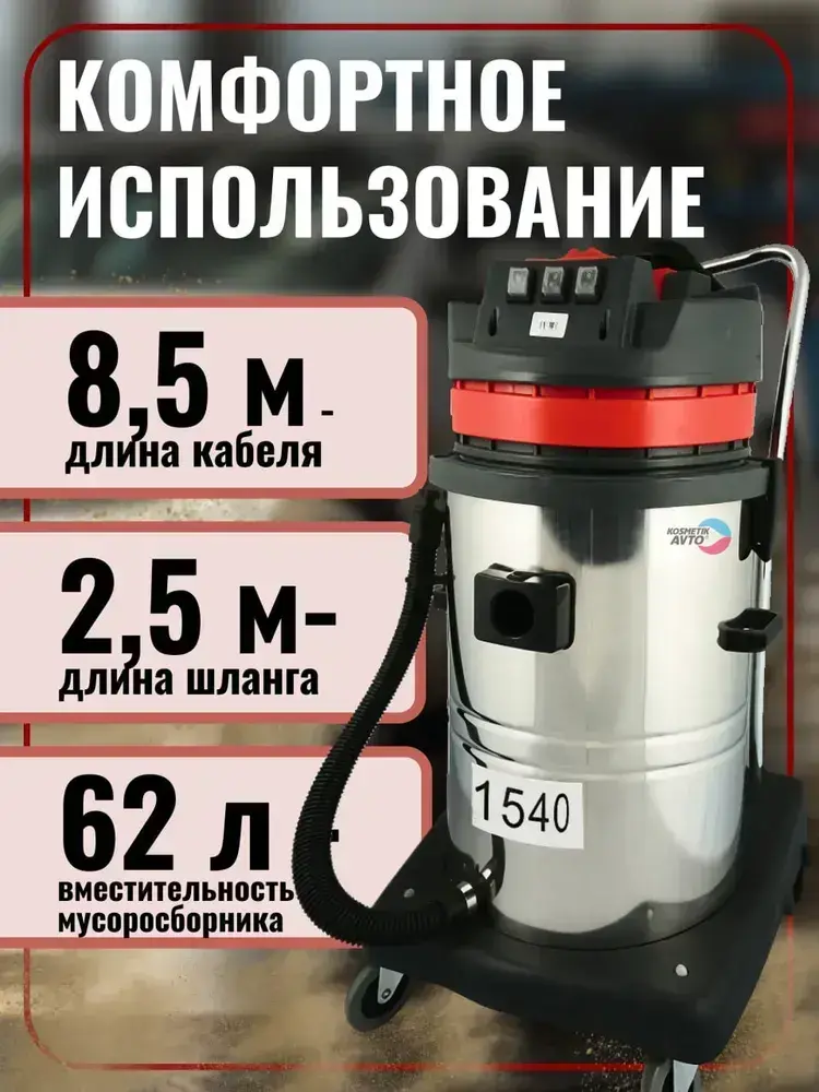 Моющий пылесос. Профессиональный пылеводосос для клининга и автомойки 1540
