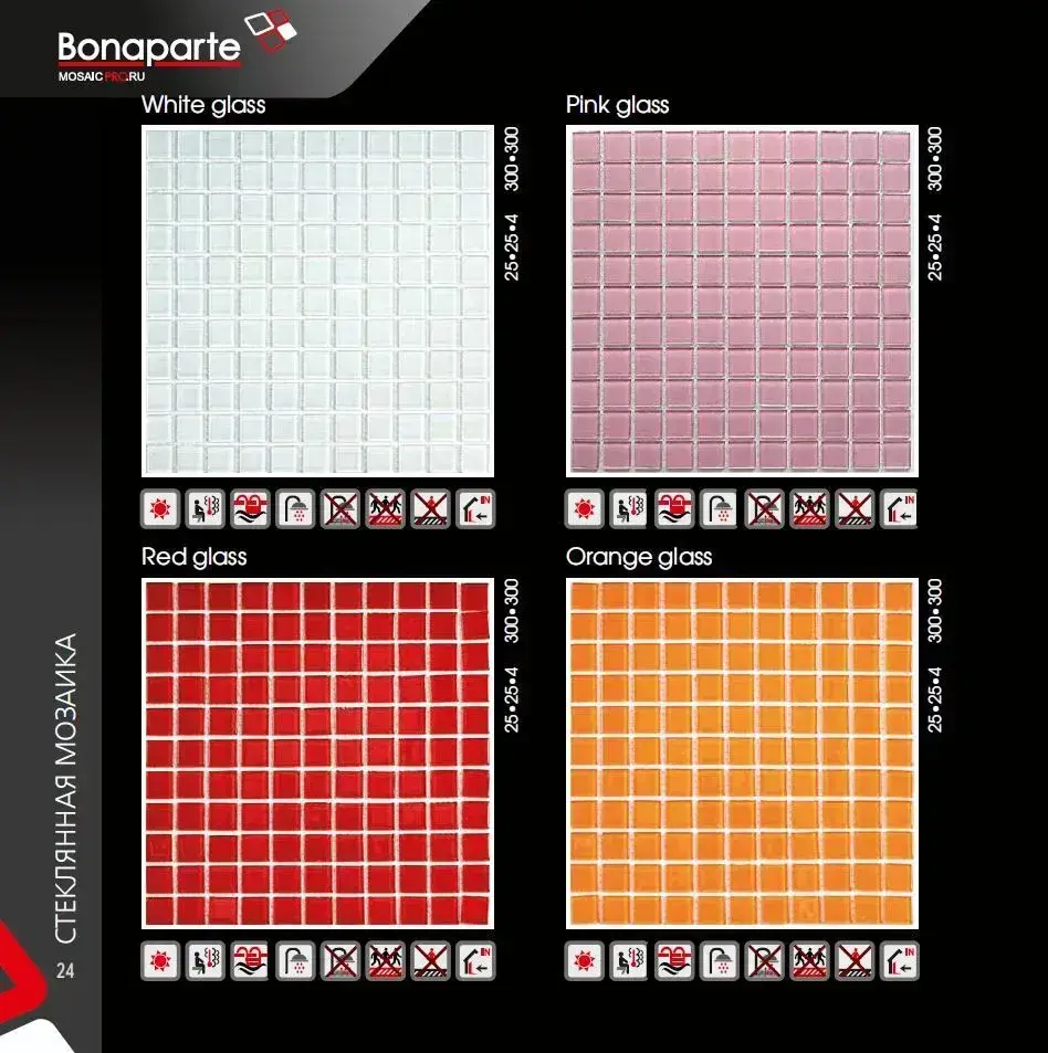Мозаика стеклянная Pink glass (25х25) 300х300х4 мм (шт)