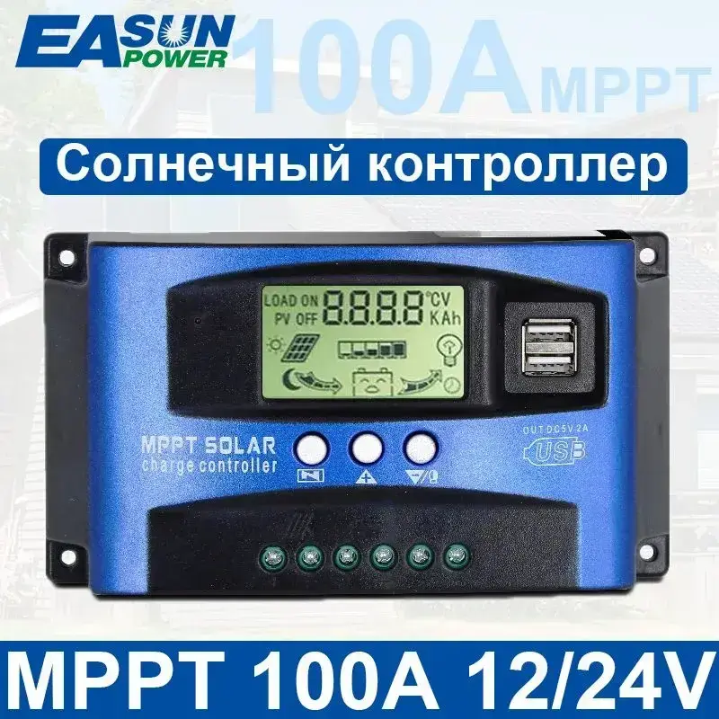 MPPT Контроллер заряда солнечной батареи,100A Dual USB ЖК-дисплей 12В/24В,Регулятор зарядного устройства панели солнечных батарей с нагрузкой