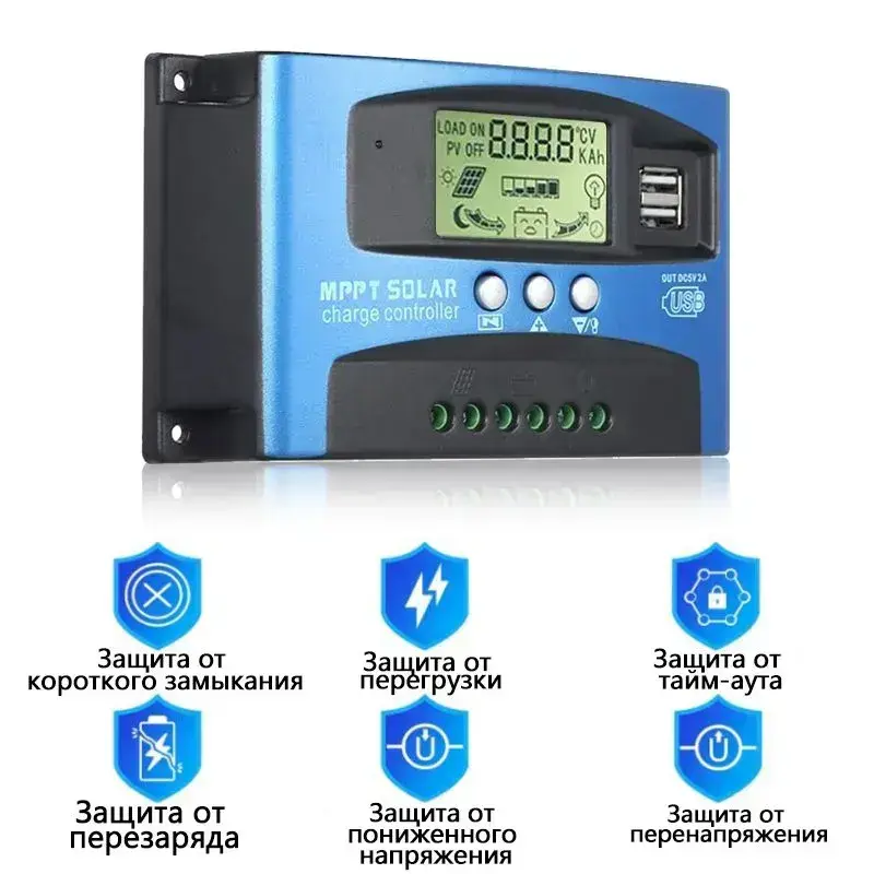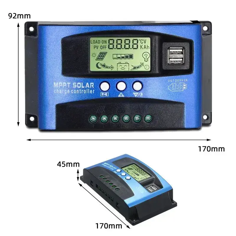 MPPT Контроллер заряда солнечной батареи,30A Dual USB ЖК-дисплей 12В/24В,Регулятор зарядного устройства панели солнечных батарей с нагрузкой