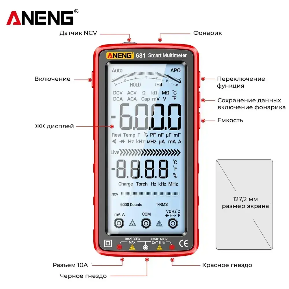 Мультиметр Aneng 681, интеллектуальный автоматический цифровой высокоточный универсальный измерительный прибор