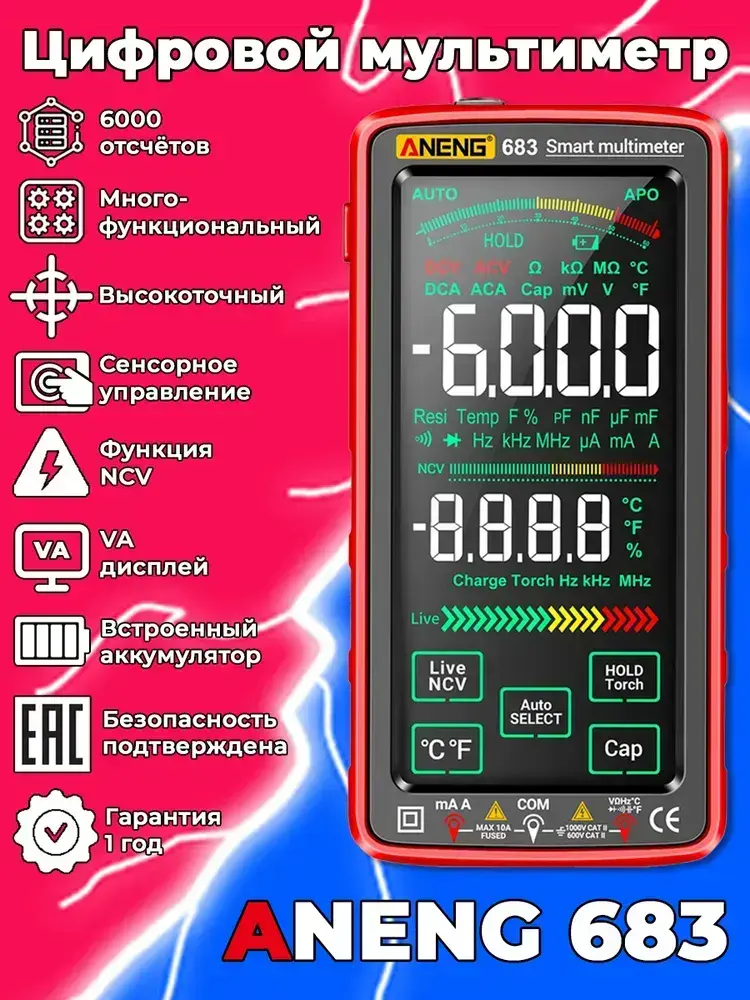 Мультиметр Aneng 683, интеллектуальный автоматический цифровой высокоточный универсальный измерительный прибор