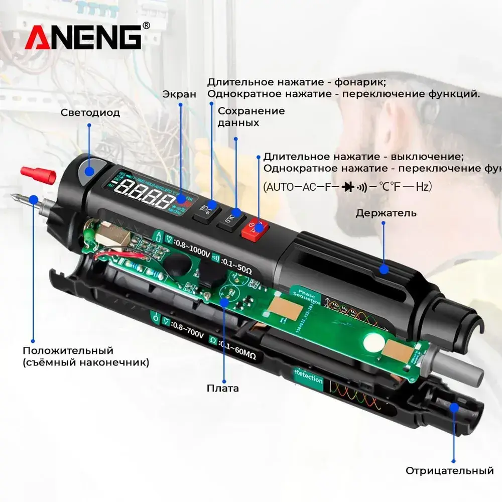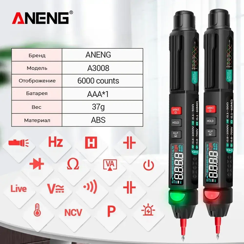 Мультиметр ANENG A3008, интеллектуальный автоматический цифровой высокоточный универсальный измерительный прибор