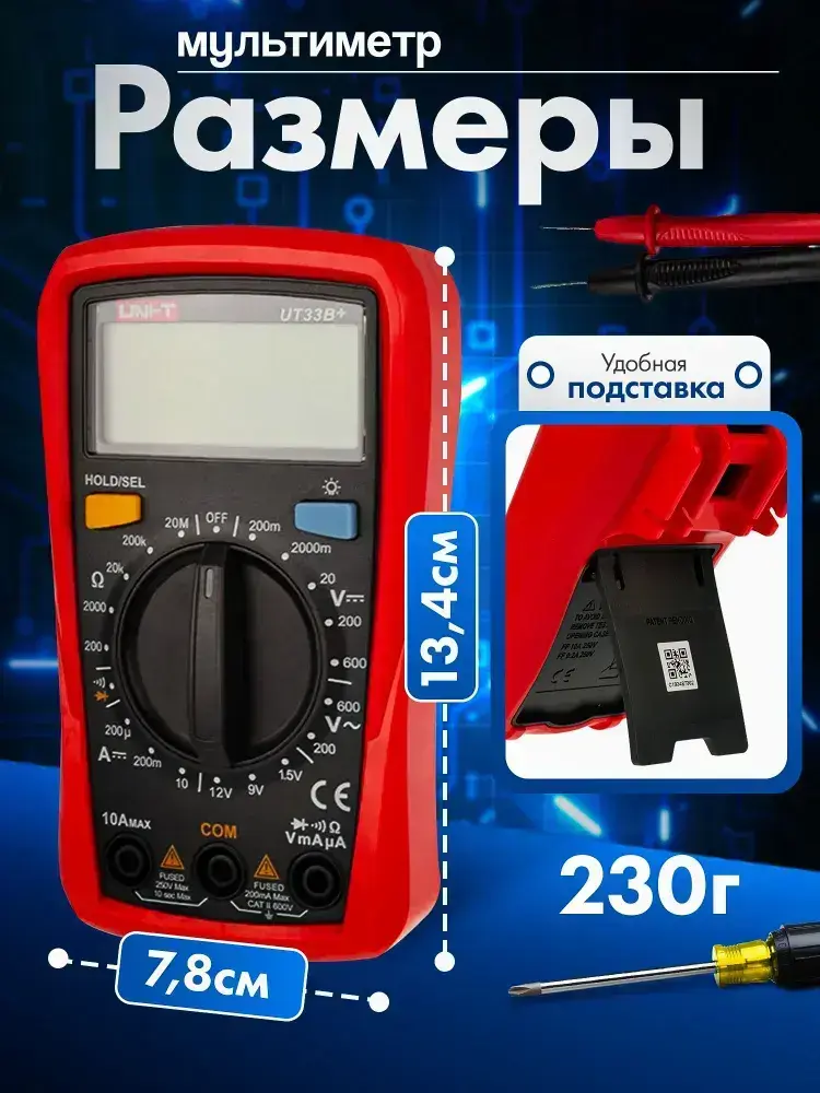 Мультиметр и тестер цифровой профессиональный с щупами UNI-T UT33B+